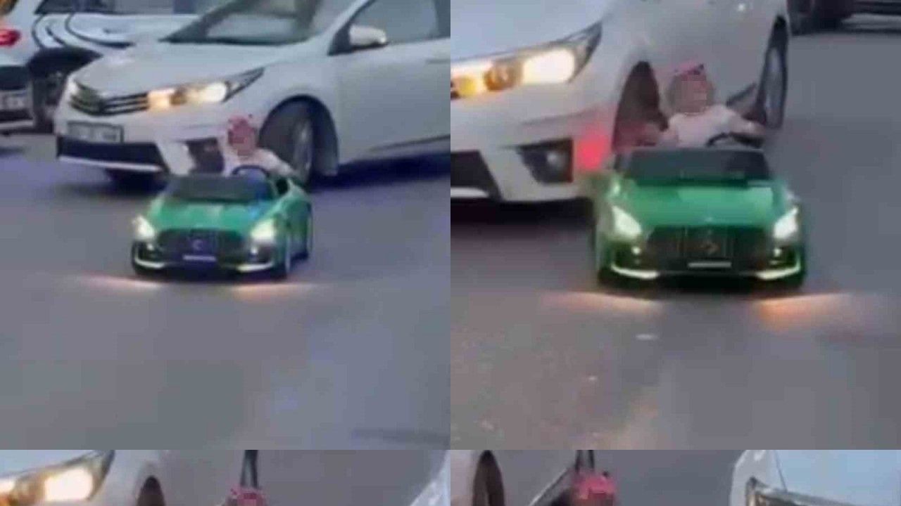Mersin’de akülü araçla yola çıkan çocuğa bir otomobil çarptı. Ucuz atlatılan kaza anı kameraya saniye saniye yansıdı.