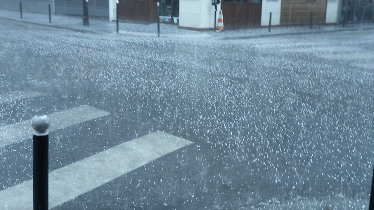 Fransa’nın başkenti Paris’te termometrelerin 25 dereceyi gösterdiği sırada ceviz büyüklüğünde dolu yağdı.