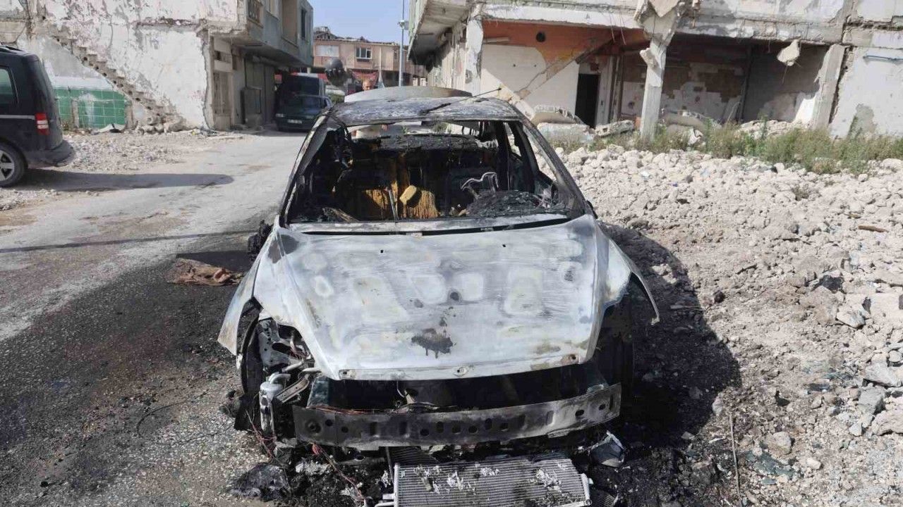 Hatay’da park halindeyken alevlere teslim olan otomobil kullanılmaz hale geldi.