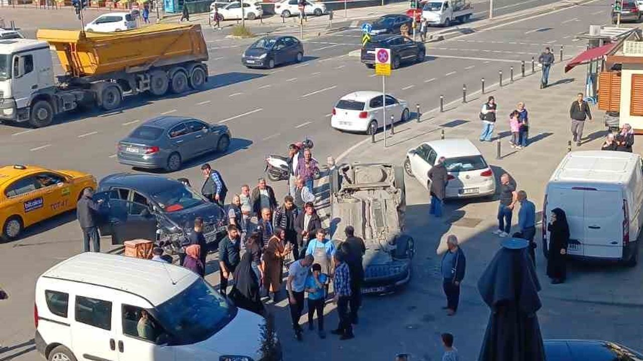 Pendik’te kırmızı ışıkta geçen otomobil, seyir halindeki başka bir araca çarparak ters döndü. Kazada, 5 kişi yaralandı.