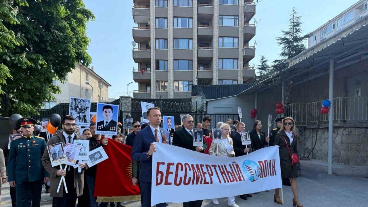 Sovyetler Birliği tarafından "Büyük Vatan Savaşı" olarak adlandırılan 2. Dünya Savaşı’nda Nazi Almanyası’nın mağlup edilmesinin 80. yıl dönümü, Ankara’da da Rusya Büyükelçiliği’nin düzenlediği programla kutlandı. Büyükelçilik bahçesinde gerçekleşen Zafer Günü ile kutlamalarında "Ölümsüz Alay" yürüyüşü yapıldı. Yürüyüşte Türkiye’de yaşayan Rus vatandaşları, 2. Dünya Savaşı’na katılan aile büyüklerinin fotoğraflarını taşıyarak, marşlar söyledi.