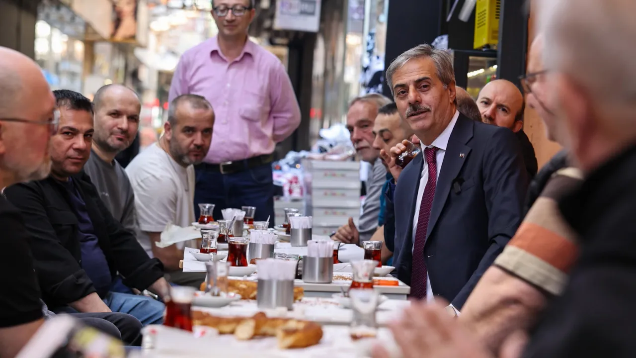 Bölge esnafıyla çay ve simit eşliğinde birlikte kahvaltı yapan Alemdar, Uzunçarşı’da başlayacak dönüşüm çalışmalarıyla ilgili istişarelerde bulundu.