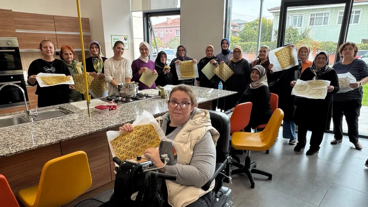 Adapazarı Sosyal Gelişim Merkezi (SGM) mutfak sınıfında gerçekleştirilen etkinlikte, özel bireylerin anneleri strec filme çevre dostu bir alternatif olarak kullanılabilen, gıdayla temasa uygun balmumu kumaşlar üretti.