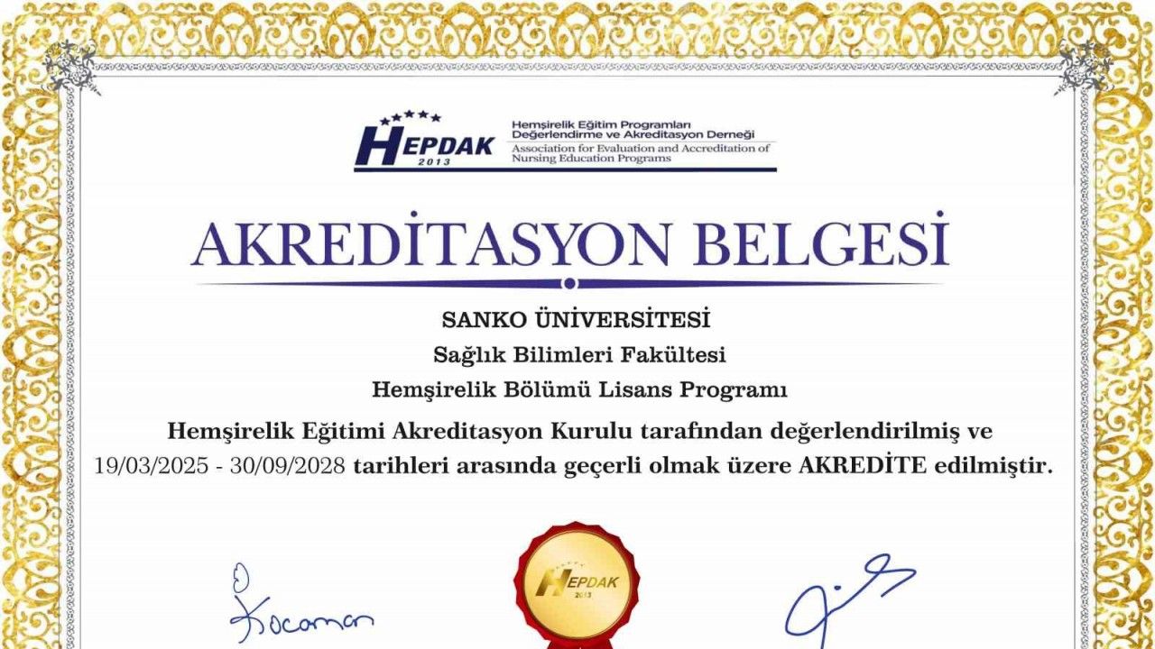 SANKO Üniversitesi Rektörü Prof. Dr. Güner Dağlı, "SBF Hemşirelik programımızın eğitim kalitesinin uluslararası standartlara uygunluğu bir kez daha tescillenmiş oldu" dedi. Prof. Dr. Dağlı, SBF Hemşirelik Programı’nın, eğitim-öğretim faaliyetlerinin kalite ve yeterlik açısından HEPDAK standartlarına göre yapılan değerlendirme sonunda önceden almaya hak kazandıkları iki yıllık akreditasyon belgesi süresinin üç yıl daha uzatılarak toplamda beş yıl akredite olmaya hak kazandığını söyledi.