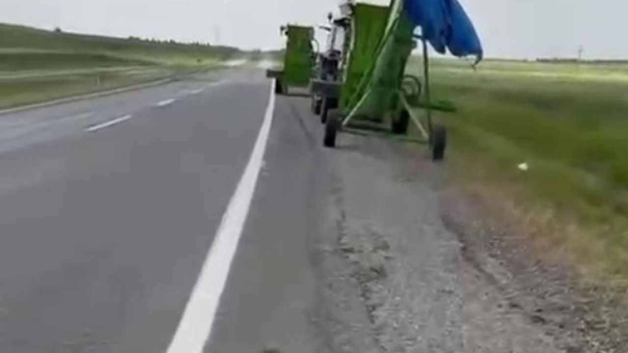 Siirt-Batman karayolunda seyir halindeki traktörün arkasına bağlı saman helezyonu aniden devrildi. Olay yerinde başka bir aracın bulunmaması faciayı önledi.