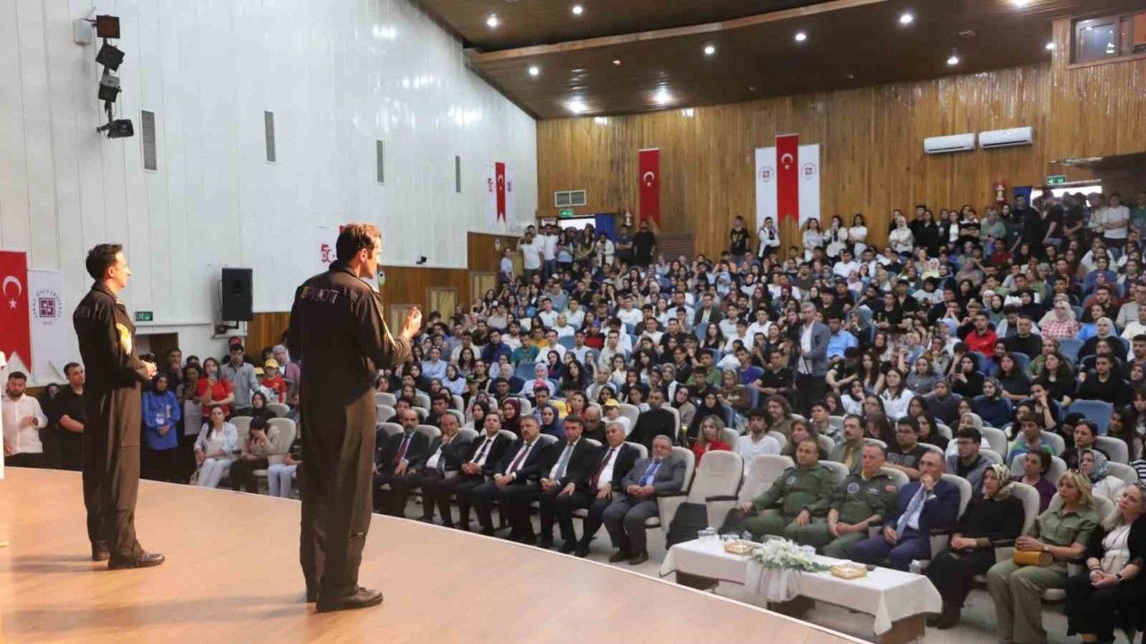 Fırat Üniversitesinin 50. kuruluş yılı etkinlikleri kapsamında Elazığ semalarında nefes kesen bir gösteri uçuşu gerçekleştiren Türk Hava Kuvvetlerinin gözbebeği SOLOTÜRK ekibi, üniversite öğrencileriyle düzenlenen söyleşide bir araya geldi.