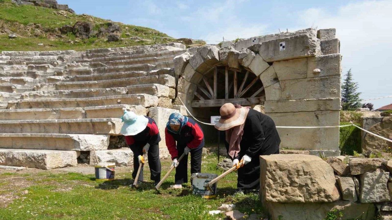 Kazı çalışmalarına katılan ilk ekip, Park ve Bahçeler Müdürlüğü personelleri oldu. Yaklaşık 20 kişilik ekip, arkeologların gözetiminde antik tiyatroda yabani ot temizliği yaptı.