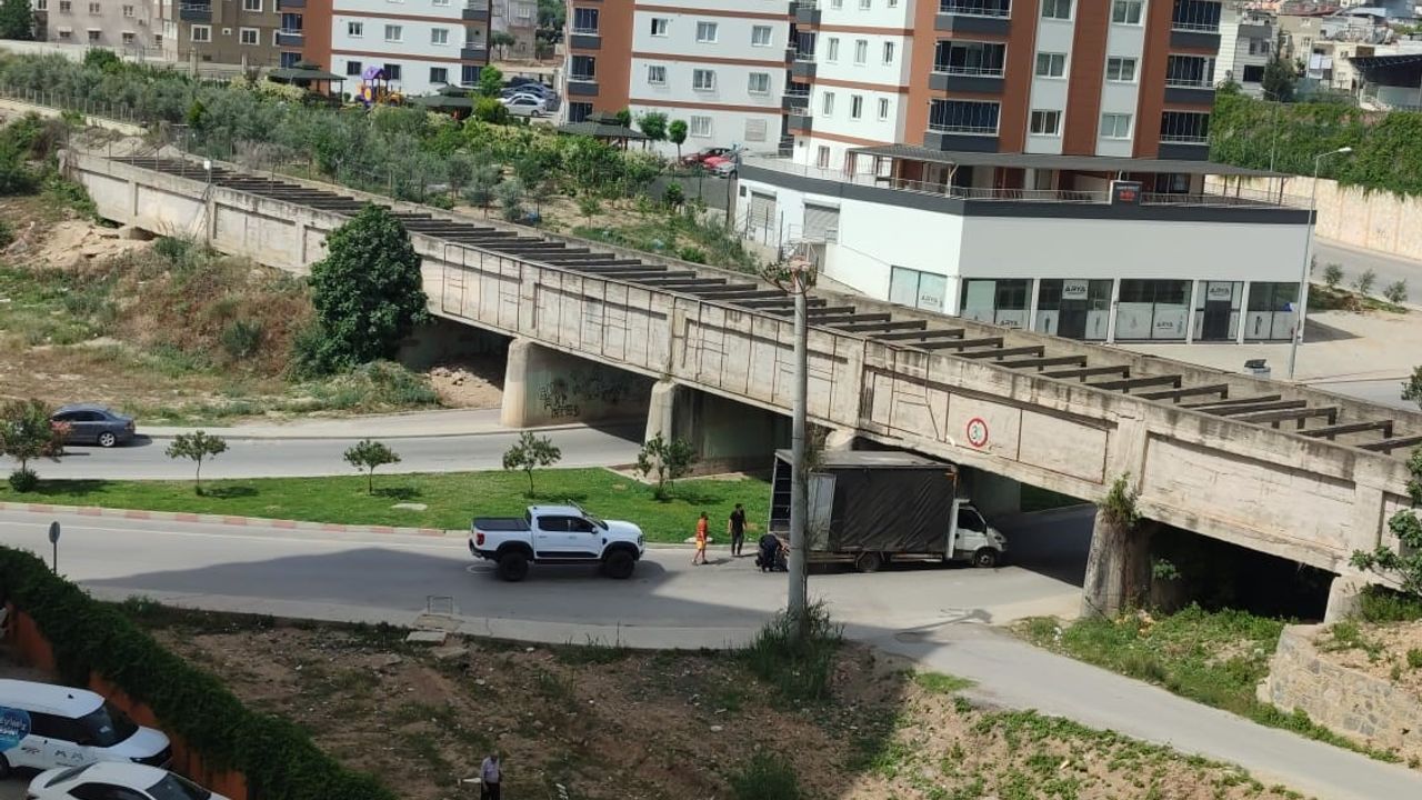 Mersin’in Tarsus ilçesinde kamyonet, sulama kanalı köprüsü altında sıkıştı.