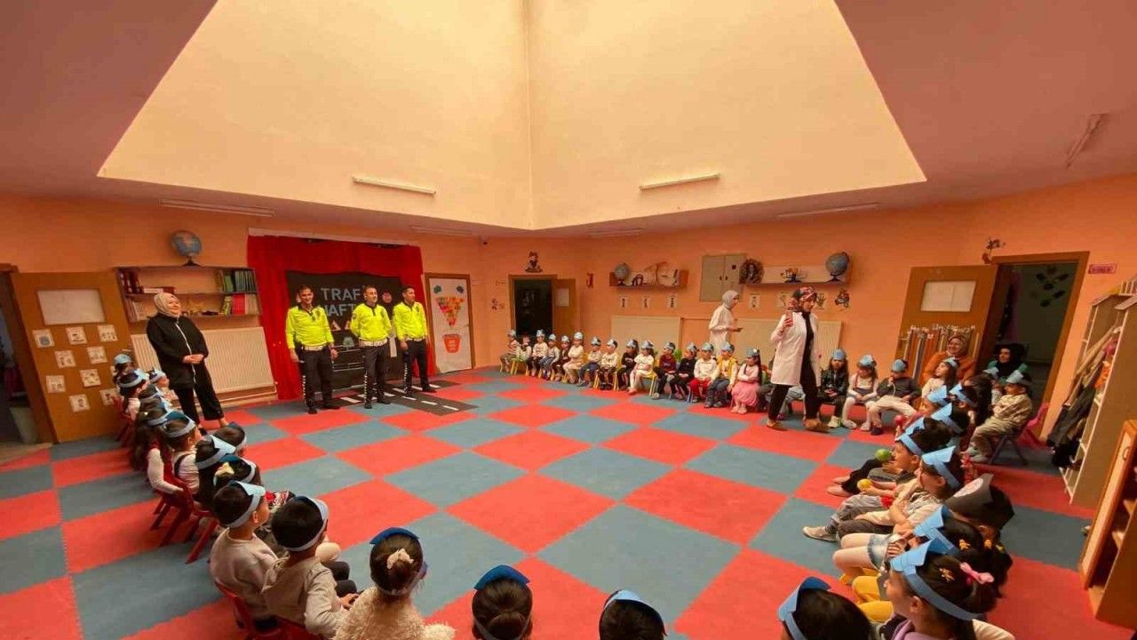 Erzincan İl Emniyet Müdürlüğü Tercan Bölge Trafik Denetleme İstasyon Amirliği ekiplerince "3-9 Mayıs Trafik Haftası" etkinlikleri kapsamında Tercan Anaokulu öğrencilerine etkinlik düzenlendi.