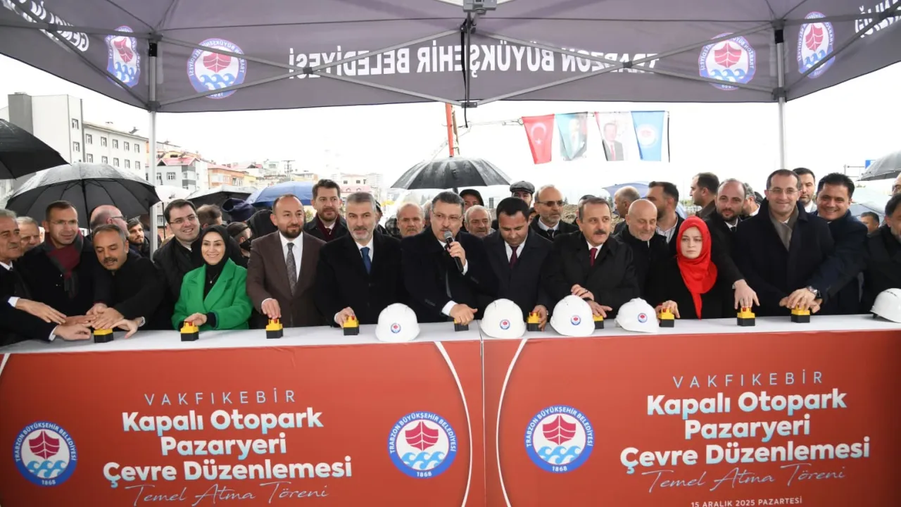 TRABZON (İGFA) - Trabzon Büyükşehir Belediyesi'nin 18 ilçede sürdürdüğü yatırım çalışmaları kapsamında Vakfıkebir Kapalı Otopark, Pazaryeri ve Çevre Düzenlemesi Projesi'nin temeli atıldı. Törene Büyükşehir Belediye Başkanı Ahmet Metin Genç'in yanı sıra, Vakfıkebir Kaymakamı Hacı Arslan Uzan, Vakfıkebir Belediye Başkanı Fuat Koçal, ilçe belediye başkanları, AK Parti Trabzon İl Başkanı Sezgin Mumcu, AK Parti Kadın Kolları Başkanı Ayfer Cihan, AK Parti Ortahisar İlçe Başkanı Seyit Hisoğlu, AK Parti Vakfıkebir İlçe Başkanı Ahmet Uzun, siyasi parti ve sivil toplum kuruluşlarının temsilcileri, muhtarlar ve çok sayıda vatandaş katıldı.