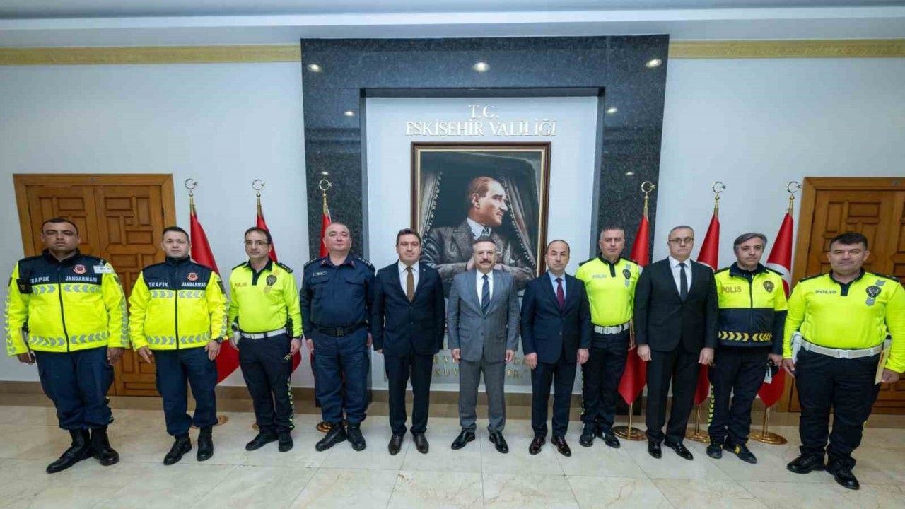 Eskişehir Valisi Hüseyin Aksoy, emniyet ve jandarmaya bağlı trafik personeline başarı belgesi takdim etti.