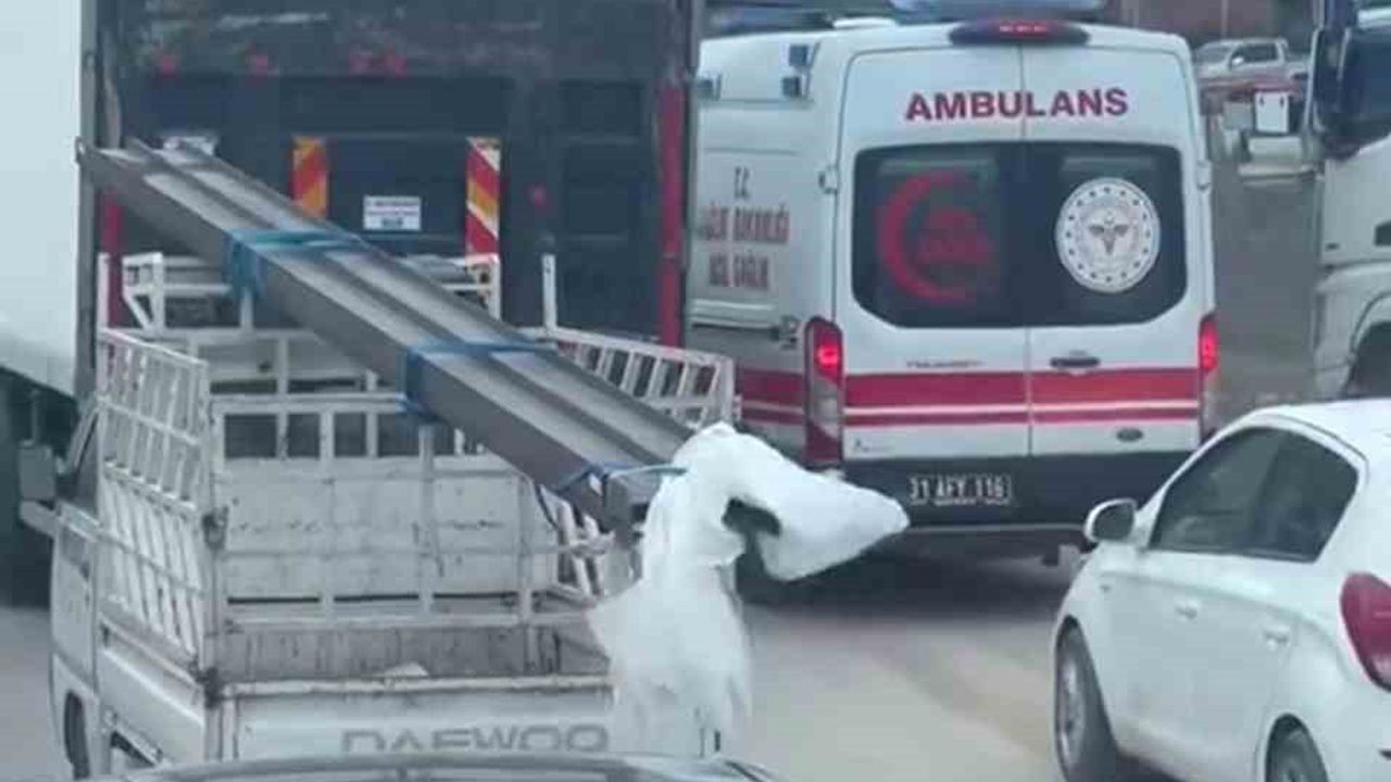 Hatay’ın Antakya ilçesinde emniyet şeridinin yanlış kullanımı ve trafik yoğunluğu nedeniyle, sirenleri açık ambulans trafikte ilerlemekte güçlük çekti.