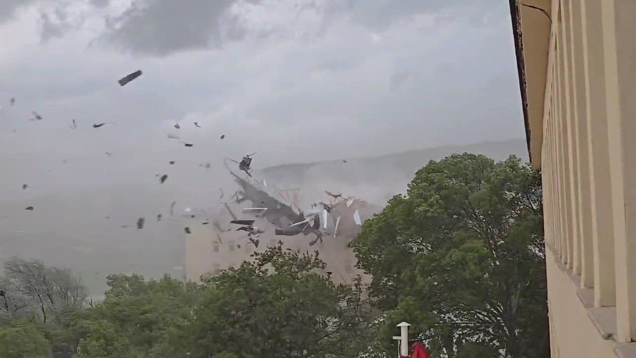 Tunceli’de etkili olan fırtına nedeniyle birçok binanın çatısında zarar oluşurken, bir çatının parçalanarak uçtuğu an saniye saniye kameralara yansıdı.