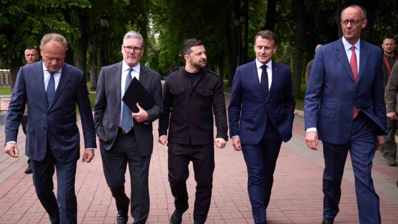 İngiltere Başbakanı Keir Starmer, Fransa Cumhurbaşkanı Emmanuel Macron, Almanya Başbakanı Friedrich Merz ve Polonya Başbakanı Donald Tusk, Rusya Devlet Başkanı Vladimir Putin’in Moskova’da müttefikleriyle birlikte düzenlediği Zafer Günü geçit töreninden bir gün sonra Ukrayna Devlet Başkanı Vladimir Zelenskiy ile görüşmek üzere Kiev’e geldi. Avrupalı liderler, Ukrayna Devlet Başkanı Vladimir Zelenskiy ile birlikte Gönüllüler Koalisyonu zirvesine katıldı. Beş lider, zirvenin ardından ABD Başkanı Donald Trump ile 20 dakikalık bir telefon görüşmesi de gerçekleştirdi.