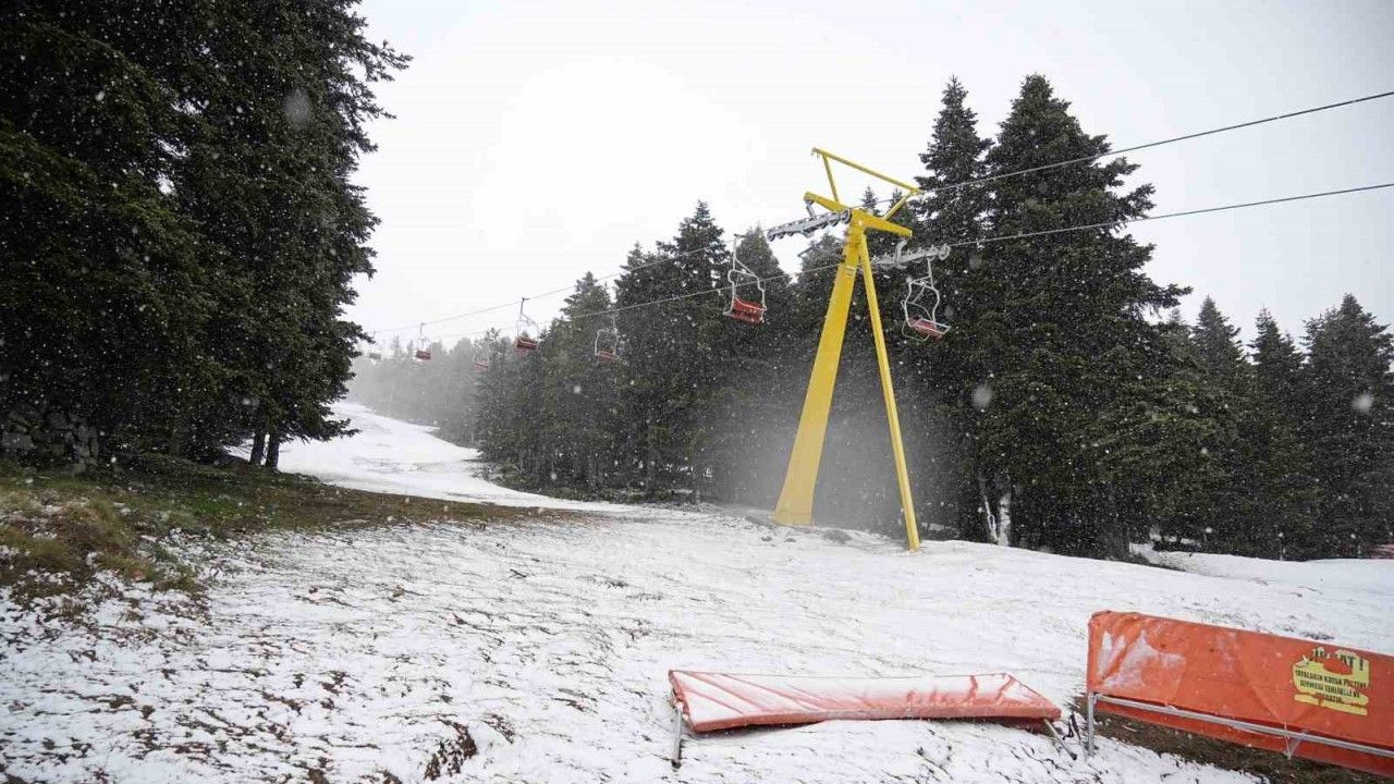 Kış turizmi destinasyonlarından Uludağ’a mayısta yağan kar pistlerin bir kısmını beyaza bürüdü.