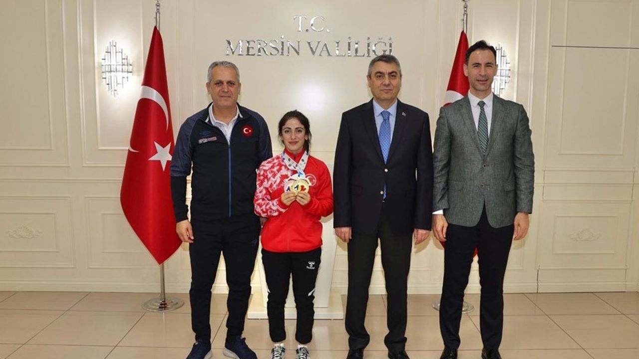 Mersin Valisi Atilla Toros, Avrupa Halter Şampiyonası’nda altın madalya kazanan milli halterci Gamze Altun’u makamında ağırladı.