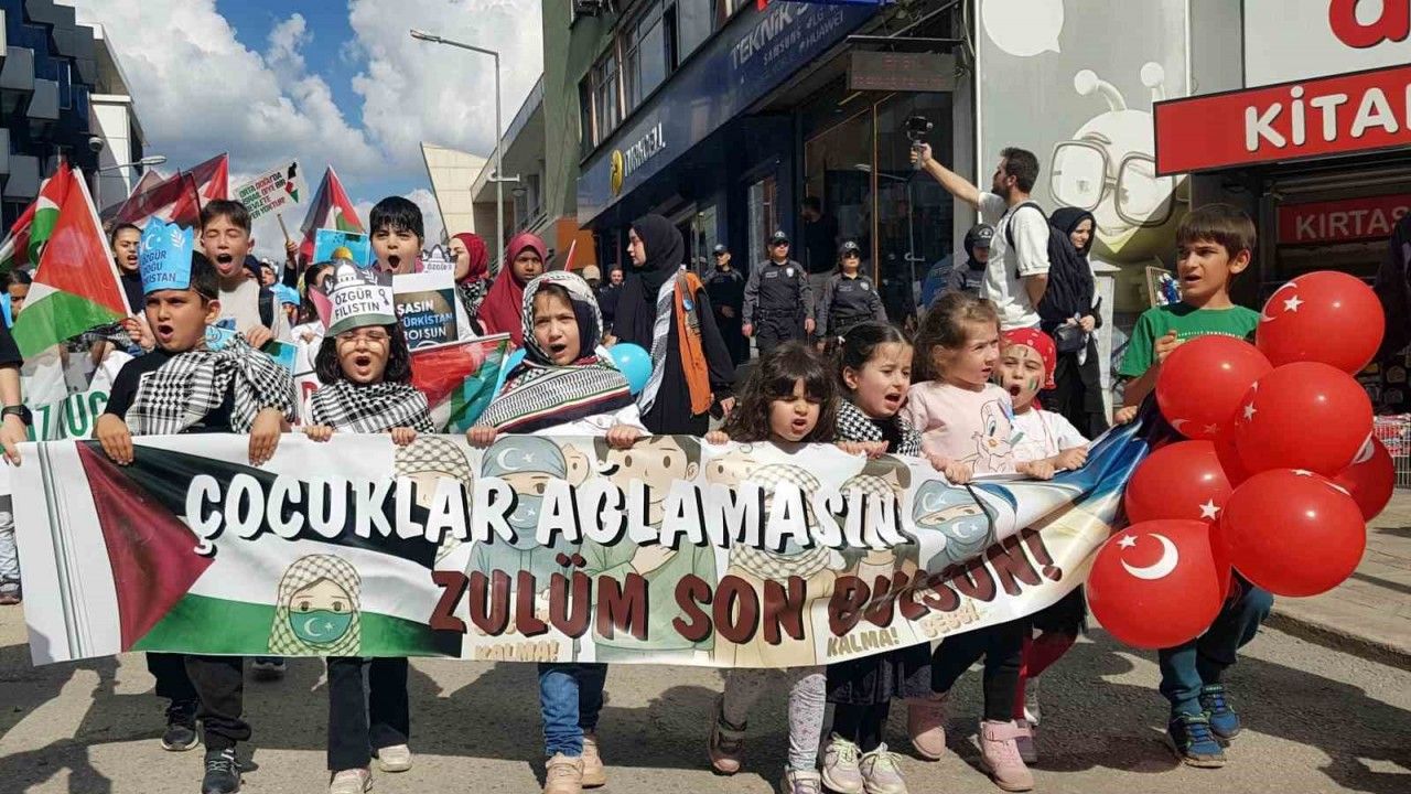İsrail’in Gazze’ye yönelik saldırılarını protesto etmek ve Filistinli çocuklara yönelik zulme dikkat çekmek amacıyla Karabük’te çocukların öncülüğünde yürüyüş düzenlendi.