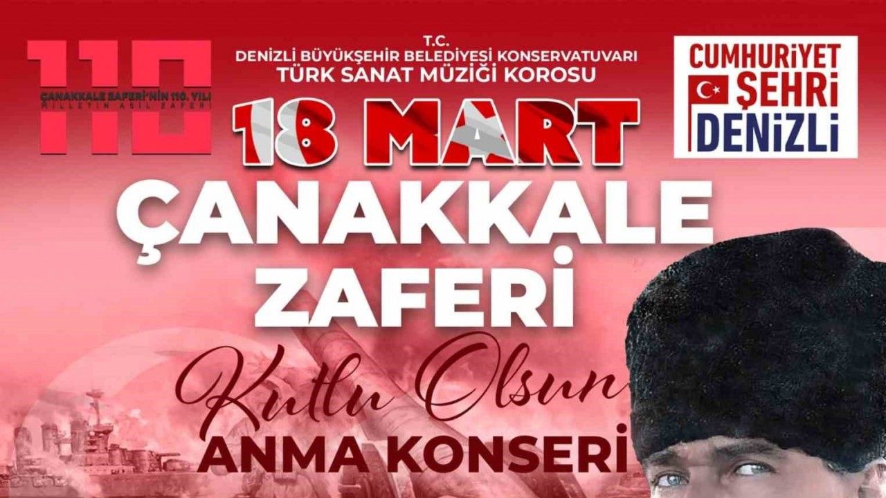Çanakkale Zaferi’nin 110. yıl dönümü Denizli Büyükşehir Belediyesi Konservatuvarı Türk Sanat Müziği Korosu’nun sahne alacağı bir konser ile kutlanacak.