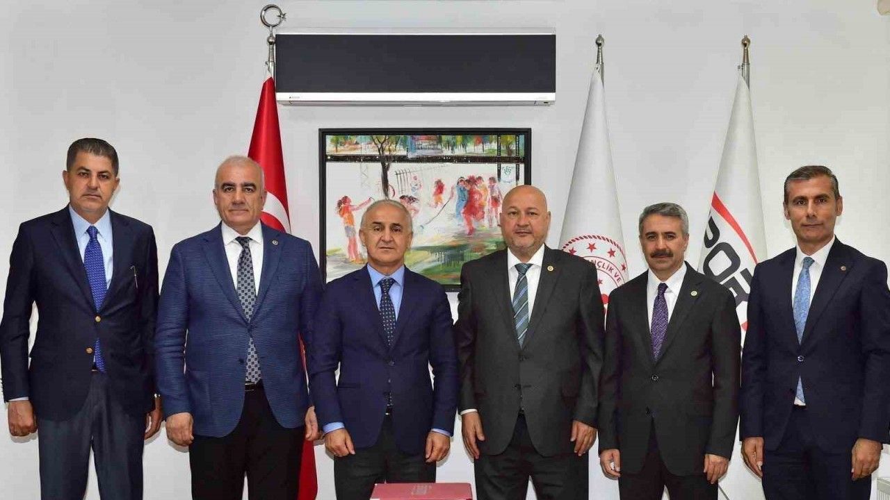 AK Parti Adıyaman Milletvekili, TBMM Divan Başkanlık Üyesi Doç. Dr. İshak Şan, beraberindeki heyetle birlikte Spor Toto Başkanlığı’nda Adıyaman’a kazandırılacak yeni spor projeleri için protokol imzaladı.