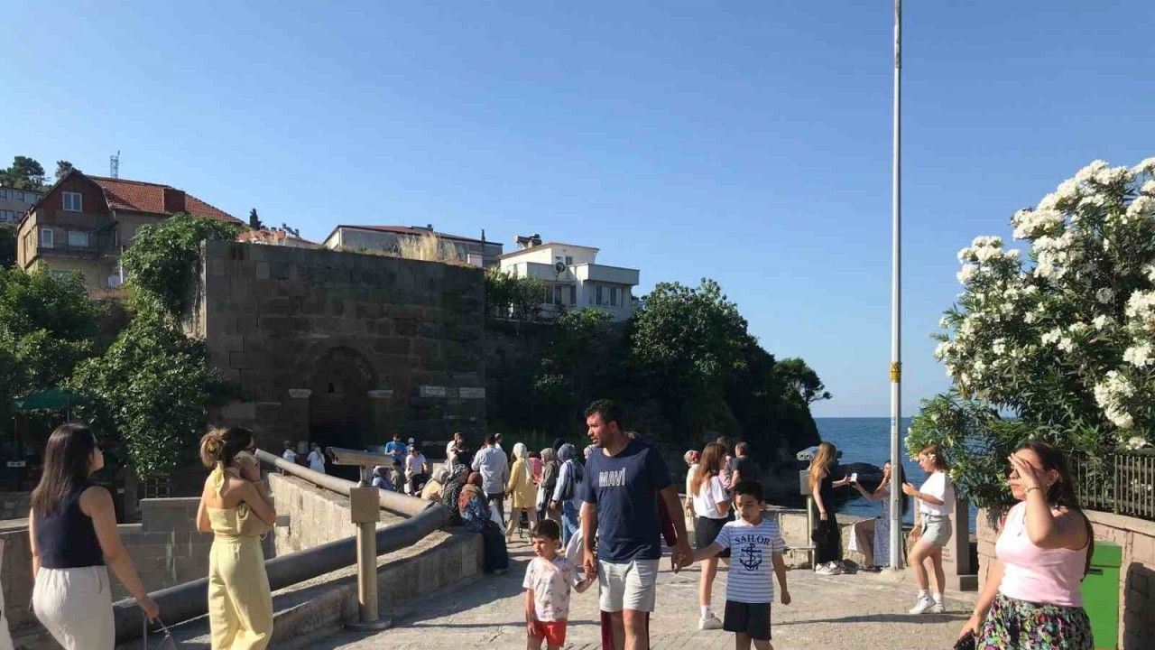 Okulların kapanması ve sıcaklıkların artmasının ardından yerli ve yabancı turistlerden yoğun ilgi gören Bartın’ın Amasra ilçesinde hafta sonunda yoğunluk yaşanıyor.