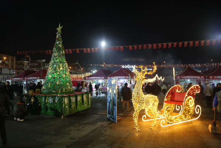 Görsel zenginliğiyle dikkat çeken alan, vatandaşların uğrak noktalarından biri haline gelirken, alışveriş yapan ziyaretçiler yeni yıl coşkusunu da doyasıya yaşıyor.