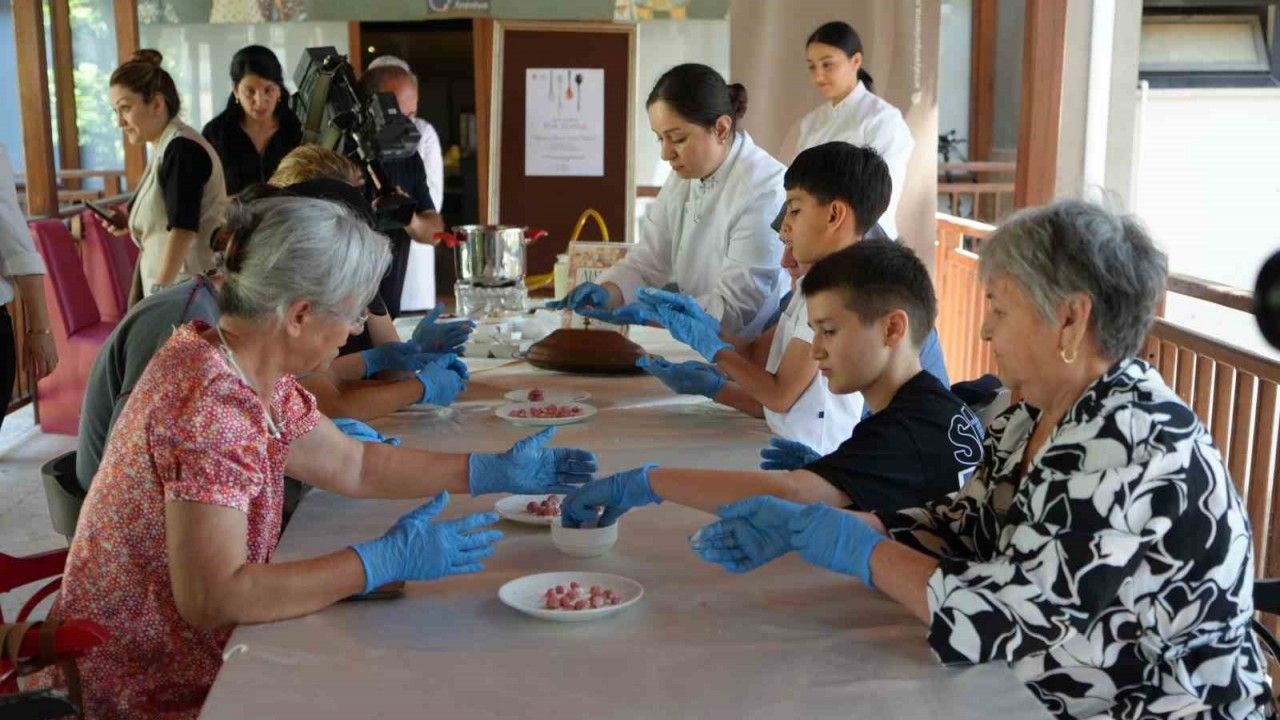 Antalya’da düzenlenen Türk Mutfağı Haftası etkinliğinde büyükanneler, torunlarıyla birlikte coğrafi işaretli gülüklü (hülüklü) çorbası hazırladı.
