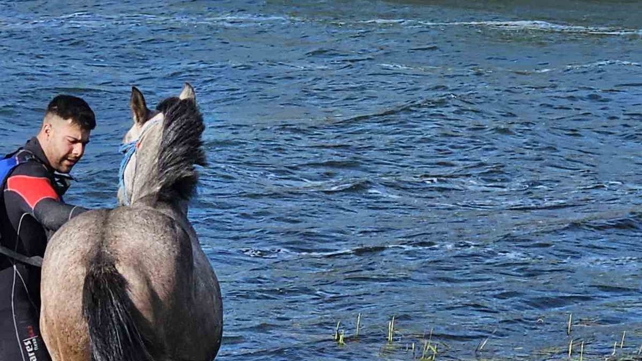 Ardahan Çıldır Gölü’ndeki adacıkta mahsur kalan at, AFAD ekiplerinin yardımıyla kurtarıldı.