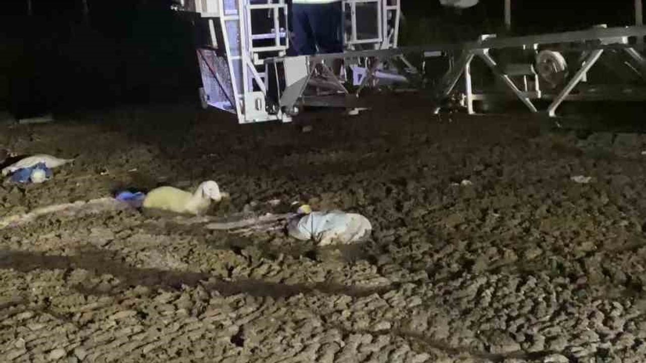 Amasya’nın Merzifon ilçesinde hayvan atıklarının döküldüğü alanda mahsur kalan koyunu itfaiye ekibi kurtardı.
