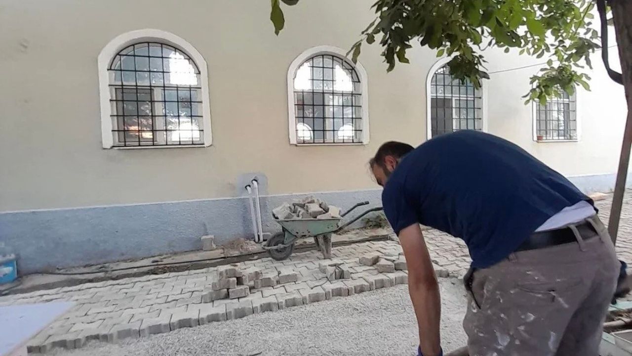 Kırklareli’nin Babaeski ilçesine bağlı Pancarköy’de cami imamı Kamuran Doğan, camii cemaati ile birlikte caminin bakım ve onarımını yaptı.