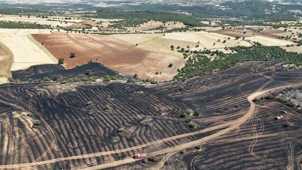 Uşak’ta tarım arazisinde çıkan yangın rüzgarın da etkisiyle makilik alana sıçradı. Ekiplerin havadan ve karadan müdahalesiyle kontrol altına alınan yangının, balya makinesinden çıkan kıvılcımdan başladığı tespit edildi.