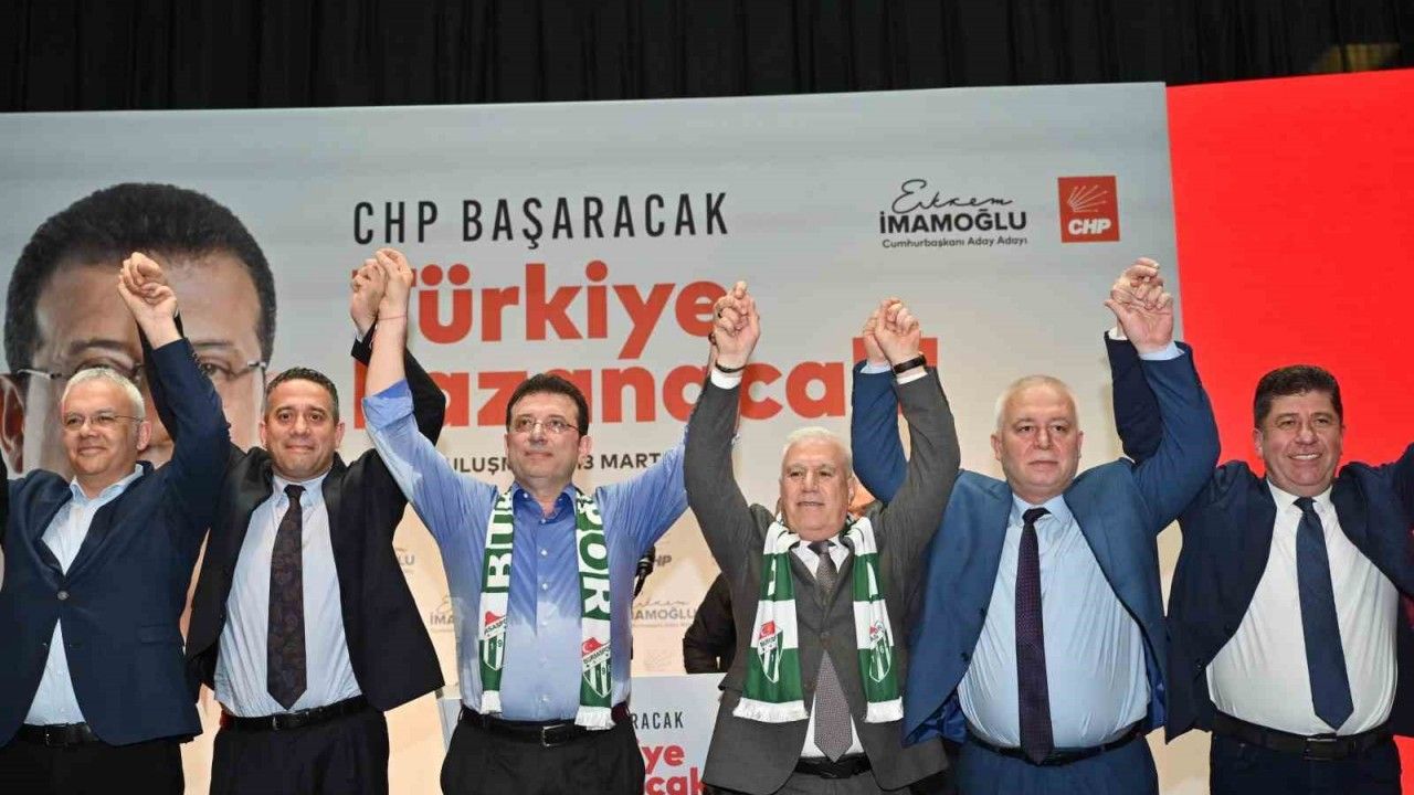 Bursa’da olmaktan duyduğu mutluluğu dile getiren Ekrem İmamoğlu ise Bursaspor atkısı ile vatandaşları selamladı. Türkiye ekonomisine dönük değerlendirmelerde bulunan İmamoğlu, Kent Lokantası ve kreşler gibi sosyal demokrat belediyecilik örneklerinin Türkiye geneline yayılmasından duyduğu memnuniyeti dile getirirken, bu uygulamaların engellenmeye çalışılmasını eleştirdi.