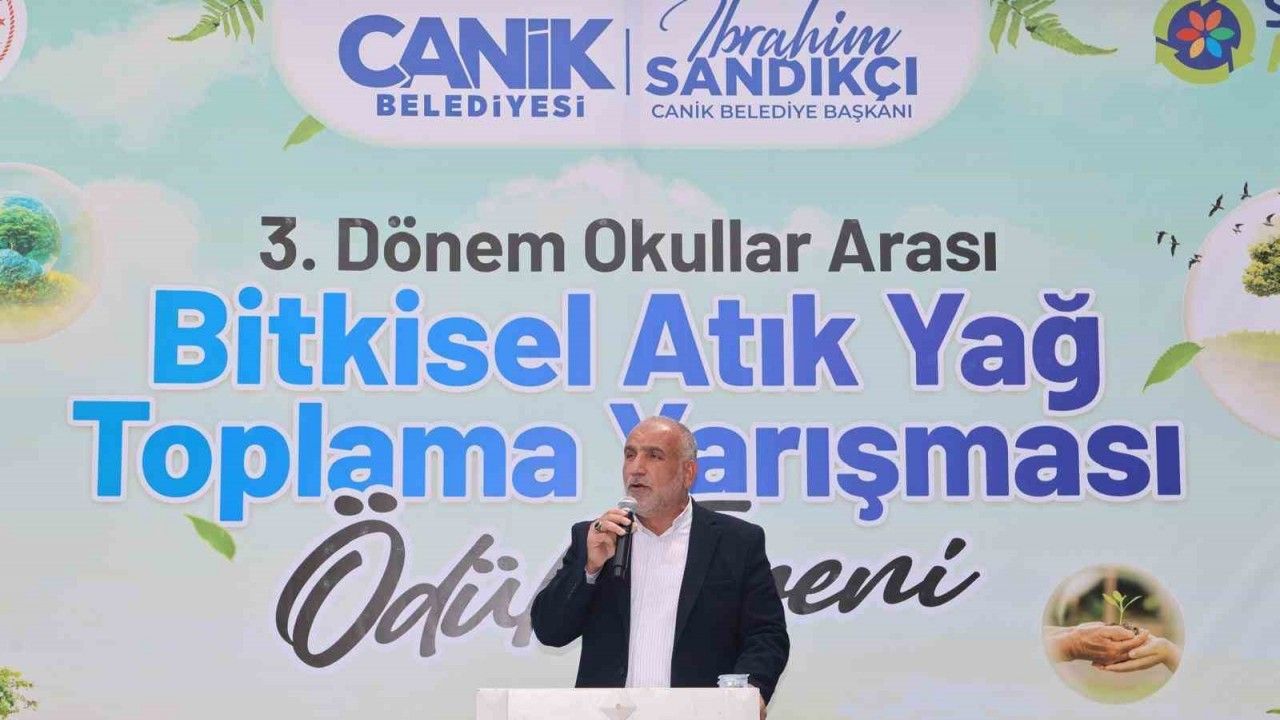 Samsun’un Canik Belediye Başkanı İbrahim Sandıkçı, 3. Dönem Okullar Arası Bitkisel Atık Yağ Toplama Yarışması’yla 1 buçuk ton bitkisel atık yağı geri dönüşüme kazandırdıklarını ve yer altı su kaynaklarının kirlenmesini önlediklerini belirtti.