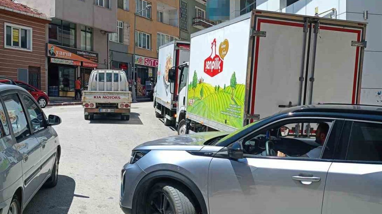 Öte yandan, bir sürücü Dedeoğlu Caddesi üzerinde trafiği engelleyecek kadar park eden toptancı araçlarından dönemezken, dakikalarca korna çalarak araçların gitmesini bekledi.