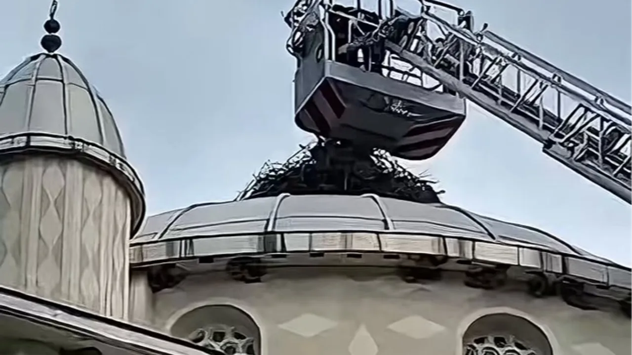 Cami kubbesine yuva yaparken sıkışan ve yaralanan kuş, itfaiye ekiplerinin dikkatli müdahalesiyle kurtarıldı.