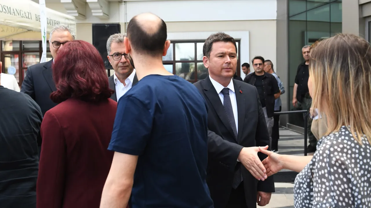 Bursa'da Osmangazi Belediye Başkanı Erkan Aydın, Kurban Bayramı öncesi mesai arkadaşlarıyla bir araya gelerek bayramlarını tebrik etti.BURSA (İGFA) - Osmangazi Belediye Başkanı Erkan Aydın, Kurban Bayramı öncesi son mesai gününde Osmangazi Belediyesi’nin merkez bina ve ilçenin farklı noktalarında bulunan hizmet birimlerini dolaşarak personel ile bayramlaştı.