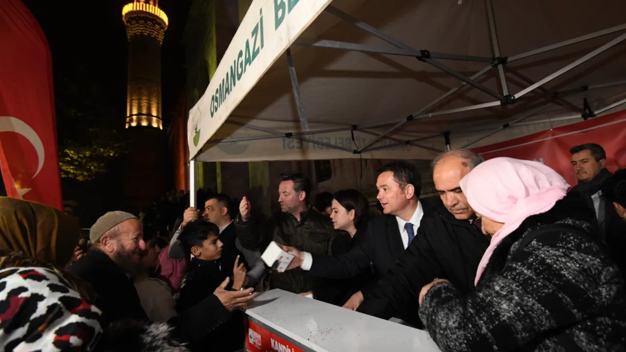Bursa'da Osmangazi Belediye Başkanı Erkan Aydın, Ulucami'de kandil simidi ikramında bulunarak Bursalıların ve tüm İslam aleminin Regaip Kandilini kutladı. Başkan Aydın, 'Tüm Bursa ve Osmangazililerin Regaip Kandilini tebrik ediyorum' ifadelerini kullandı.