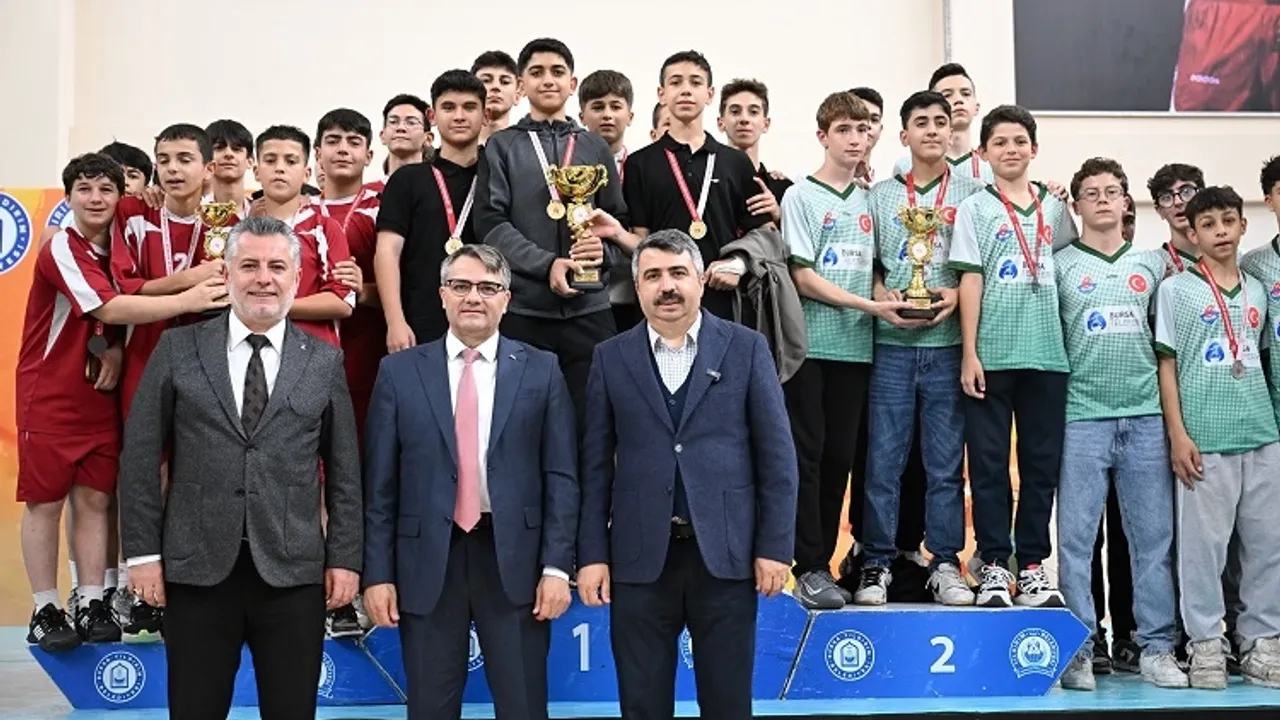 Bursa Yıldırım Belediyesi öncülüğünde 77 okuldan 9 farklı okuldan 4 bin 50 öğrencinin katıldığı ilçe spor şenlikleri ödül töreni Naim Süleymanoğlu Spor Kompleksinde yapıldı.BURSA (İGFA) - Bursa Yıldırım Belediyesi’nin öncülüğünde Kaymakamlık, Gençlik Spor İlçe Müdürlüğü, Milli Eğitim İlçe Müdürlüğü iş birliğiyle 9 Ocak’ta başlayan ‘Yıldırım Belediyesi Okul Sporları İlçe Şenlikleri’yle 77 okuldan 4 bin 50 öğrenci sporla buluştu. Futbol, basketbol, 3x3 basketbol, voleybol, satranç, jimnastik, dart, futsal ve beceri parkuru olmak üzere 9 farklı branşta düzenlenen müsabakaları 9 Mayıs’ta sona erdi. Yıldırım Belediyesi Okul Sporları İlçe Şenlikleri’nde dereceye giren takımlar için malzeme dağıtımı ve ödül töreni düzenlendi. Naim Süleymanoğlu Spor Kompleksi’nde düzenlenen törene Yıldırım Belediye Başkanı Oktay Yılmaz, Yıldırım Kaymakamı Metin Esen, AK Parti İlçe Başkanı İrfan Akkaya, Gençlik ve Spor İlçe Müdürü Mehmet Demirci, İlçe Milli Müdürü Mustafa Sevinç, siyasi parti temsilcileri, okul yöneticileri, sporcular ve veliler katıldı.