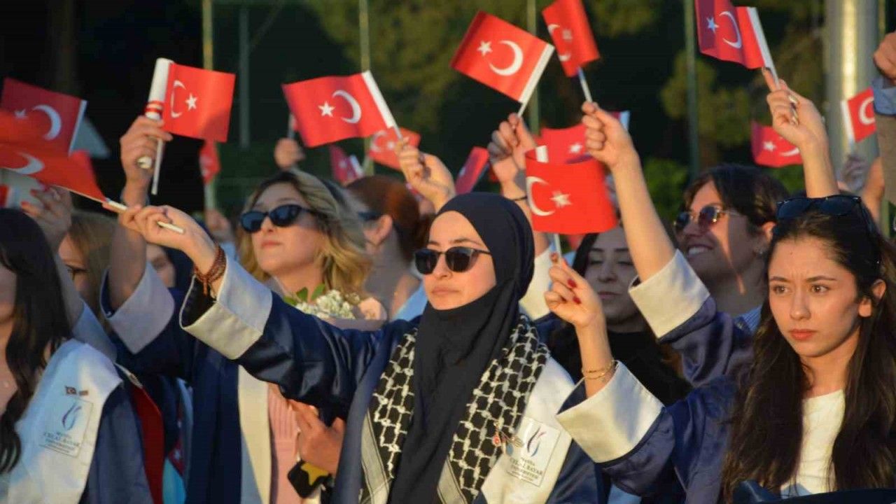 Mezuniyet yürüyüşüne bu yıl mezun olacak 580 öğrencinin yanı sıra Belediye Başkanı Erkan Kara, eşi Nermin Kara, Rektör Prof. Rana Kibar, İlçe protokolü, öğrenciler ve aileleri katıldı.