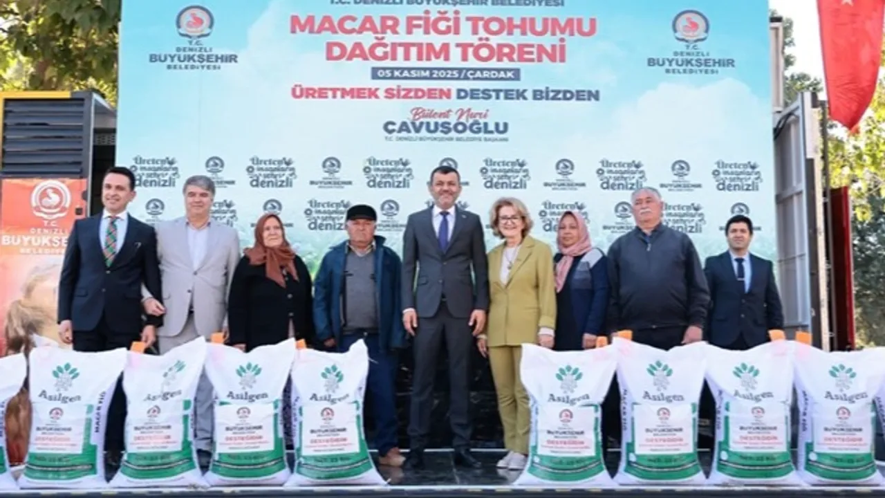 Konuşmaların ardından Başkan Çavuşoğlu ve protokol üyeleri tarafından Çardak ilçesindeki 77 üreticiye 5 bin 225 kilogram Macar fiği tohumu desteği verildi.