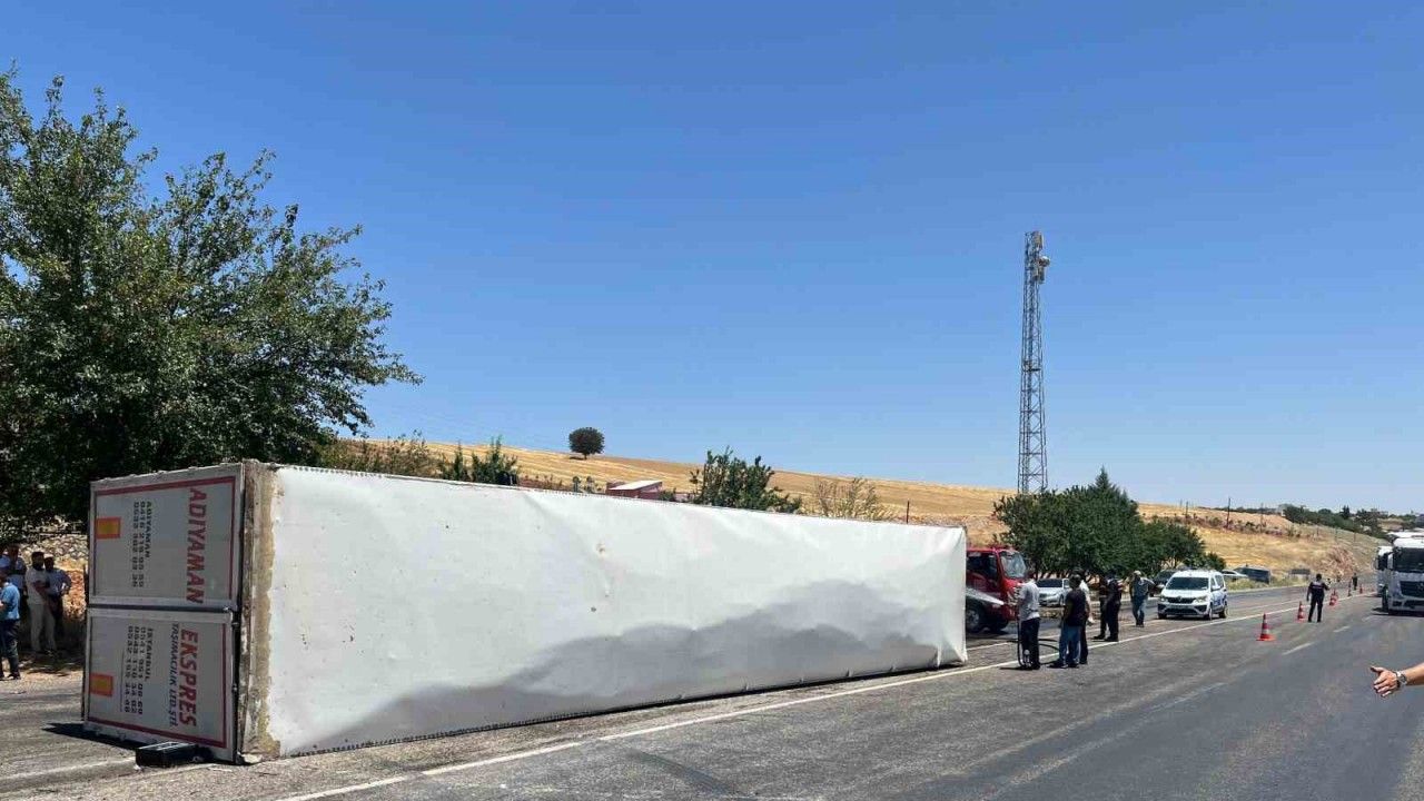 Adıyaman-Gölbaşı karayolunda meydana gelen kazada, tekeri patlayan bir tır devrildi. Kazanın ardından çıkan yangın itfaiye ekiplerinin müdahalesiyle söndürüldü.