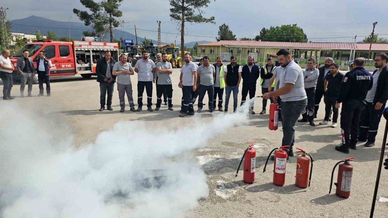 Özel idarenin yerleşkesinde gerçekleştirilen yangın eğitimi teorik ve uygulamalı olarak iki aşamalı gerçekleştirildi. 20’ye yakın özel idare personelinin katıldığı eğitim çalışmasından itfaiye ekipleri personellere yangın esnasında yapılması gerekenleri anlatırken, özellikle yangın tüpünün nasıl kullanılmasında gerektiğini da uygulamaları olarak gösterdi.