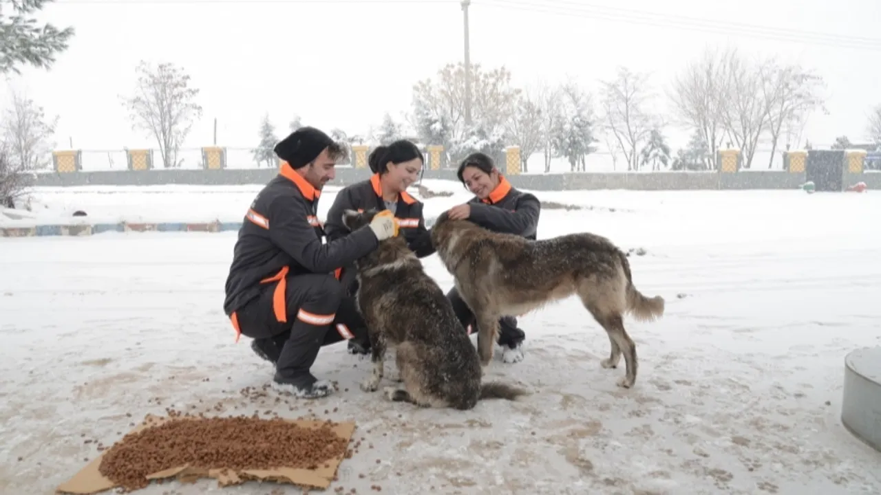Diyarbakır Büyükşehir Belediyesi, yoğun kar yağışı nedeniyle sokak hayvanlarının aç kalmaması için kent genelinde belirlediği 50 noktaya mama bıraktı.