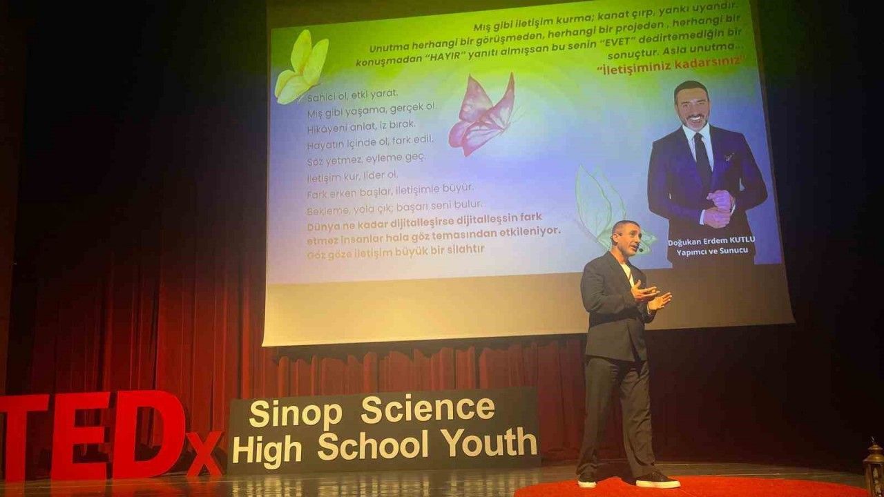 Patron Mutfakta programının yapımcısı Doğukan Erdem Kutlu, Sinop’ta özel bir kolejde düzenlenen TEDx etkinliğinde sahneye çıktı. Kutlu, "Mış Gibi Konuşmayın, Mış Gibi Yaşamayın" başlıklı konuşmasında gençlere samimiyetin, sorumluluk almanın ve sahici iletişimin önemini anlattı.