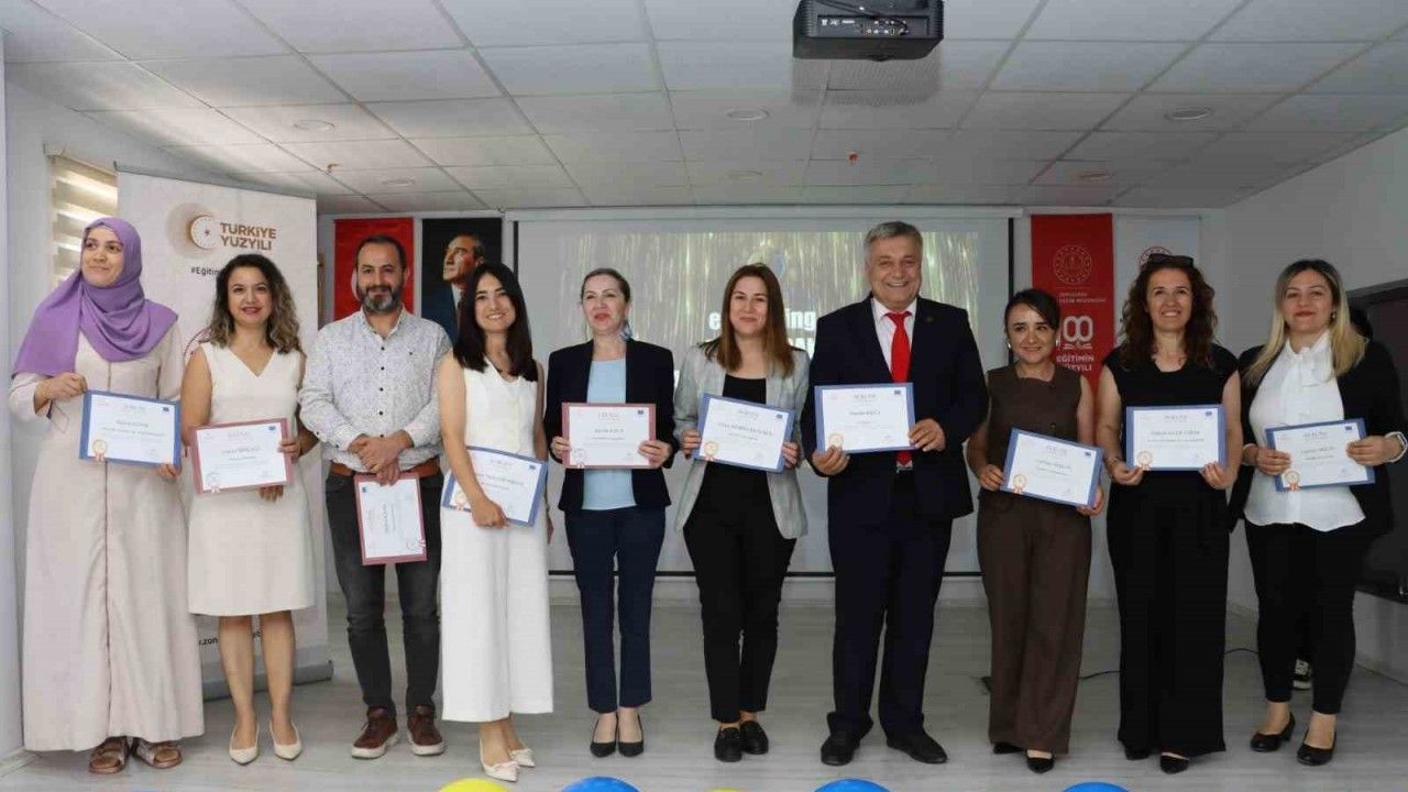 Tören sonunda ödül alan öğretmenlerle hatıra fotoğrafı çekildi.