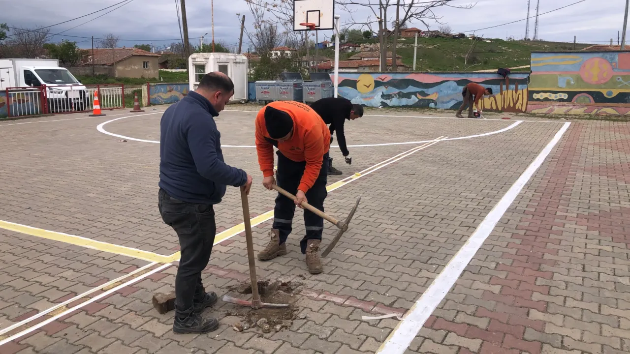 Edirne'de Süloğlu Belediyesi, ilçe genelindeki okullarda bakım, onarım, temizlik ve boya çalışmalarını aralıksız sürdürüyor.Erdoğan DEMİR / EDİRNE (İGFA) - Edirne'nin Süloğlu ilçesinde yerel belediye, Süloğlu Ortaokulu’nun bahçe zemini parke taşla düzenleyip, basketbol ve voleybol sahalarının çizgi çalışmalarını tamamladı.