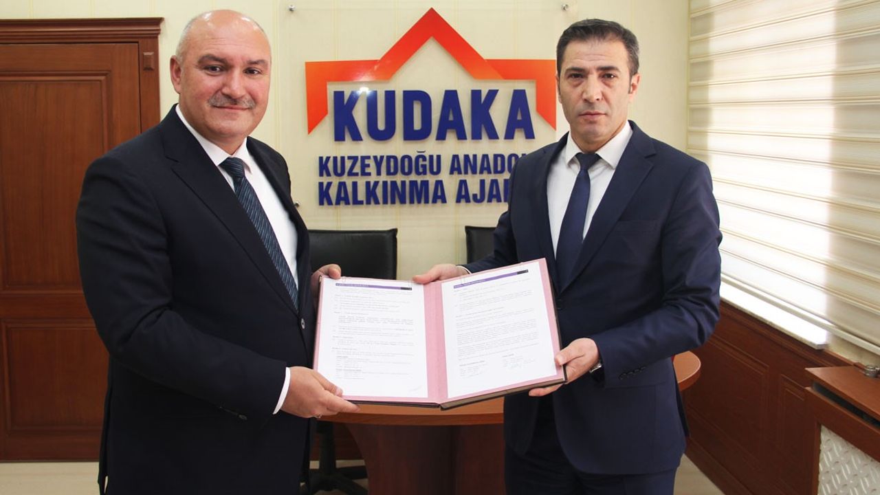 Kuzeydoğu Anadolu Kalkınma Ajansı hizmet binasında gerçekleşen imza törenine, KUDAKA Genel Sekreteri Oktay Güven, Erzincan OSB Müdürü Ömer Faruk Nayman ve kurumların projeden sorumlu personeli katıldı.