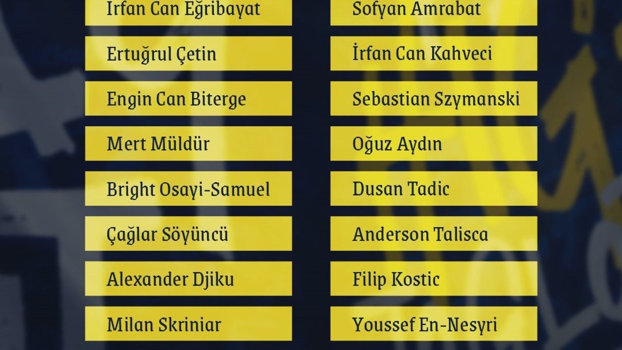 "İrfan Can Eğribayat, Osman Ertuğrul Çetin, Engin Can Biterge, Bright Osayi-Samuel, Mert Müldür, Çağlar Söyüncü, Alexander Djiku, Milan Skriniar, Yusuf Akçiçek, Levent Mercan, İsmail Yüksek, Sofyan Amrabat, Filip Kostic, Sebastian Szymanski, İrfan Can Kahveci, Oğuz Aydın, Dusan Tadic, Anderson Talisca, Youssef En-Nesyri, Edin Dzeko, Cenk Tosun."