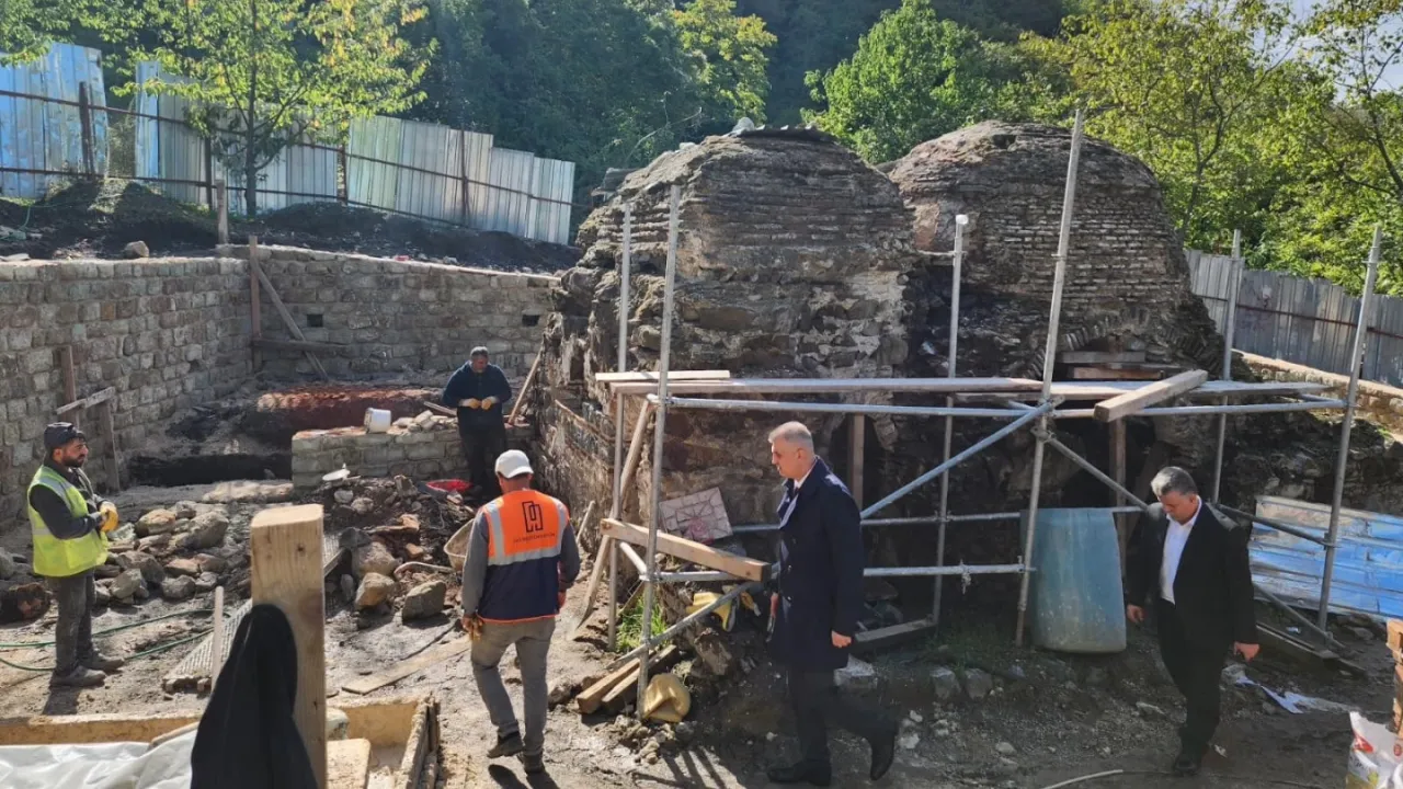 KOCAELİ (İGFA) - Gölcük Belediyesi'nin başlattığı çalışma ile Yukarı Halıdere'de bulunan tarihi Osmanlı dönemi hamamı, yeniden hayat buluyor. Bu kapsamda '1. grup korunması gerekli taşınmaz kültür varlığı' olarak tescilli olan Yukarı Halıdere tarihî Osmanlı dönemi hamamında restorasyon çalışmaları devam ediyor. Tarihi hamamı ziyaret ederek incelemelerde bulunan Gölcük Belediye Başkanı Ali Yıldırım Sezer, çalışmalar hakkında yetkililerden bilgi aldı.