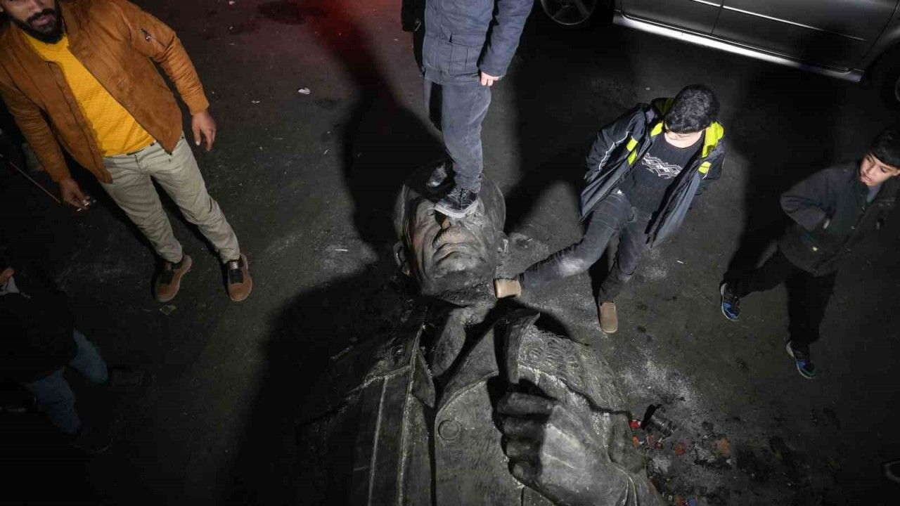 Suriye’nin devrik lideri Beşar Esad’ın babası eski Devlet Başkanı Hafız Esad’ın yıkılan heykeli, başkent Şam’daki Emevi Meydanı’nda yerlerde sürüklenmeye devam ediyor.