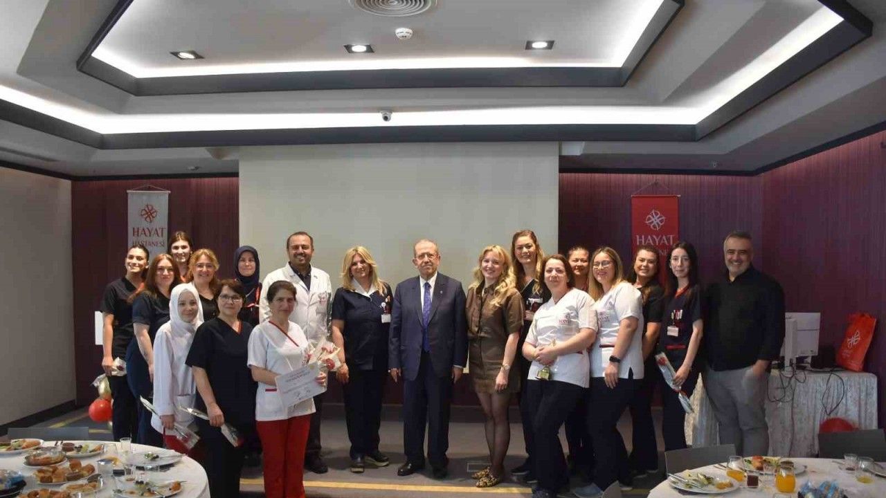 Konuşmaların ardından Hayat Hastanesi Yönetim Kurulu Başkanı Uzm. Dr. Ahmet Özkul ve hastane yöneticileri, hastane tarafından yaptırılan hasta deneyimi memnuniyet anketinde en yüksek puan alan çalışanlara ve 2024 yılında yılın enleri olarak seçilen sağlık çalışanlarına teşekkür belgesi takdim etti.